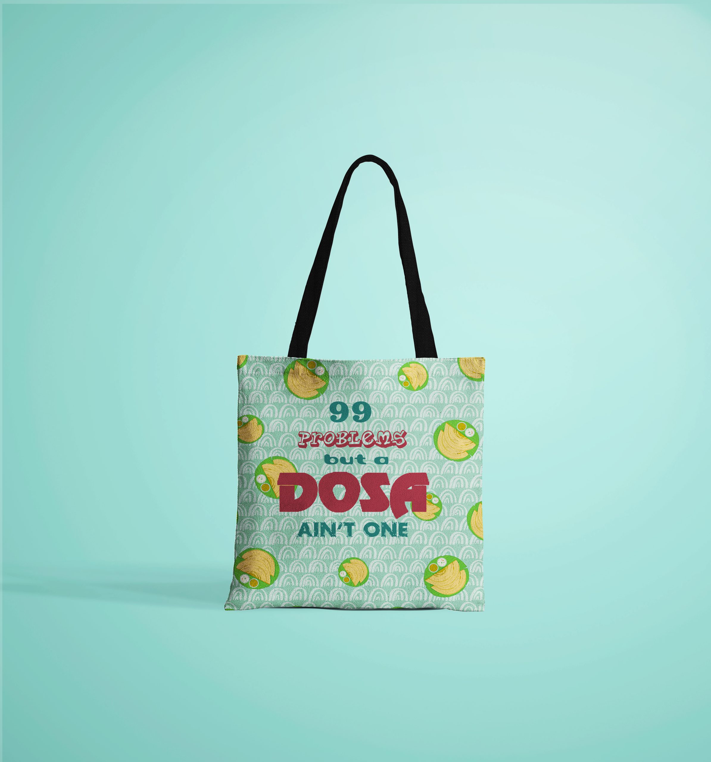 Great for people who love dosas! Stuff it with your laptop, a novel, a scarf and a hot dosa from your favourite restaurant! The Baggilicious dosa bag is the perfect way to carry all your must-have items wherever you go.