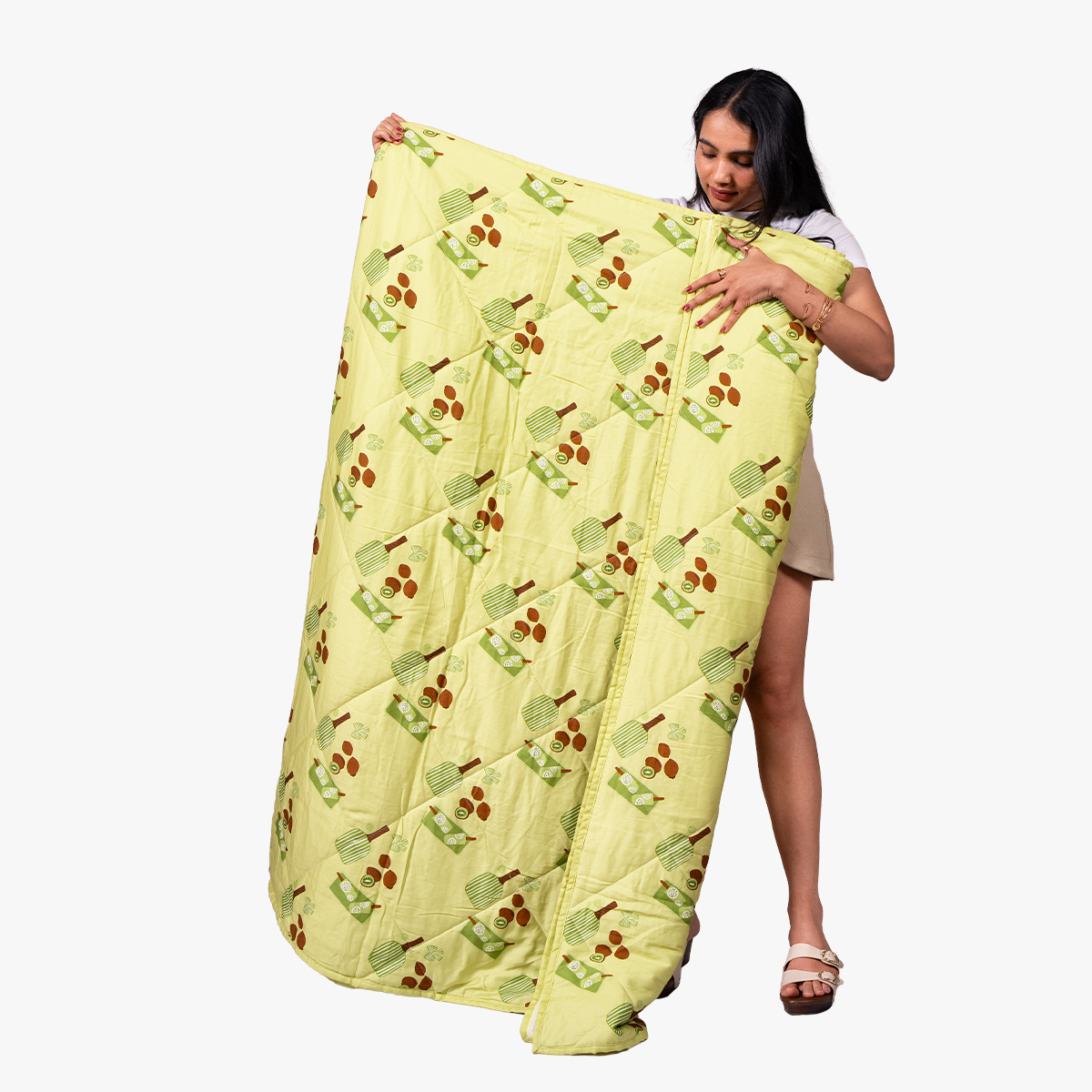 The Kiwi Kick Comforter brings that fresh, juicy aesthetic straight to your bedroom. Featuring playful kiwi slice prints, this blanket instantly adds a pop of colour and personality to your space.