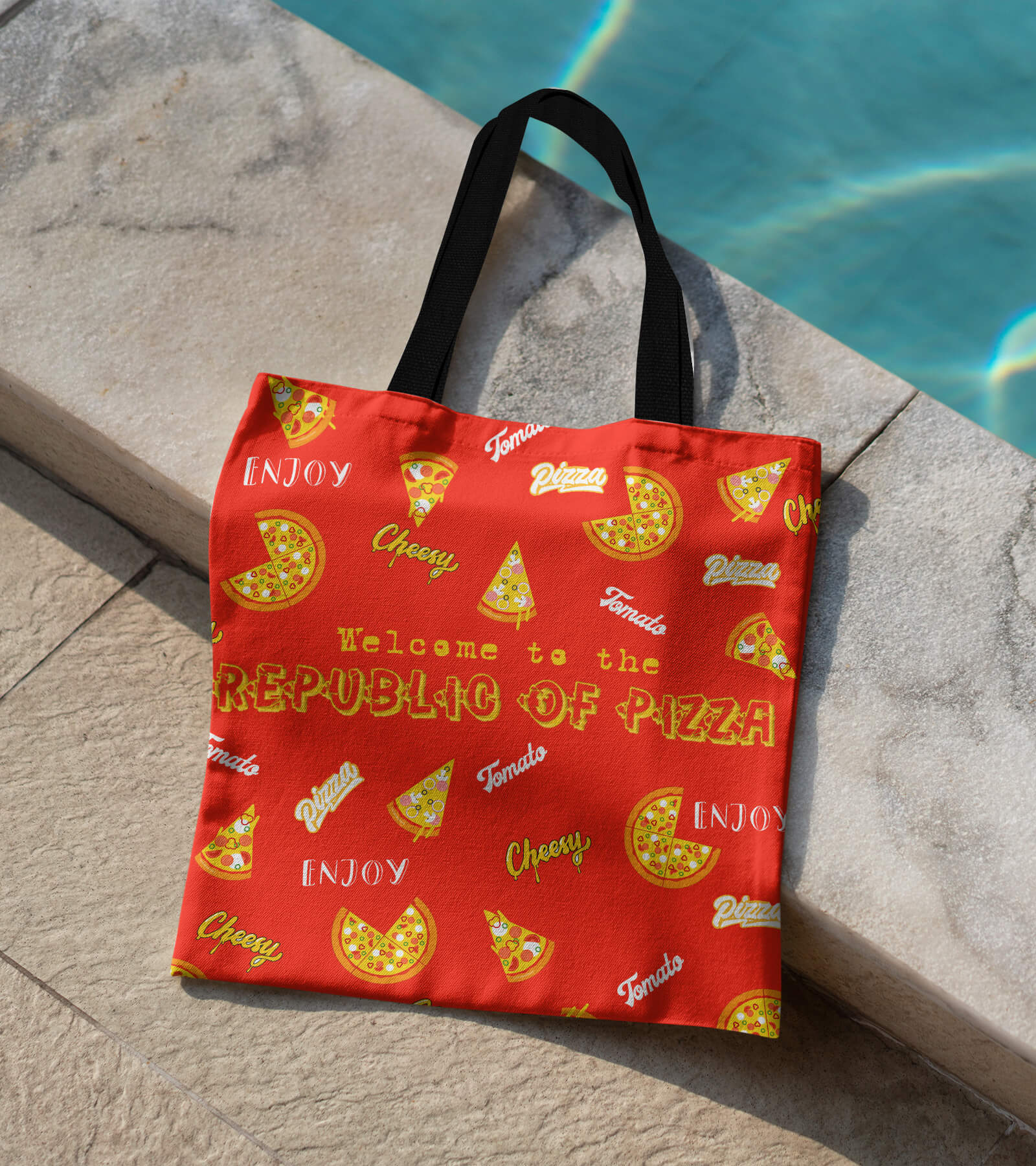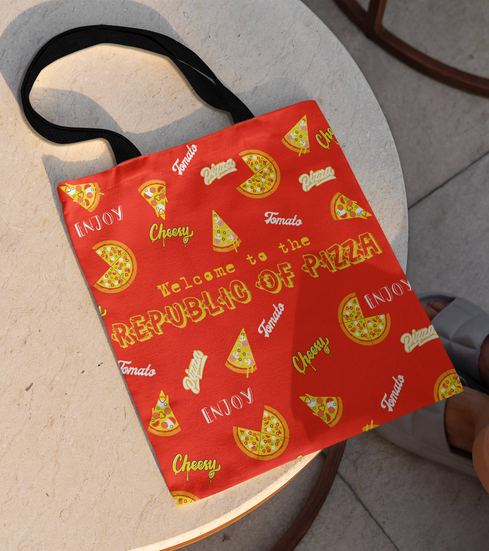 Welcome to the republic of pizza with this printed tote bag.
